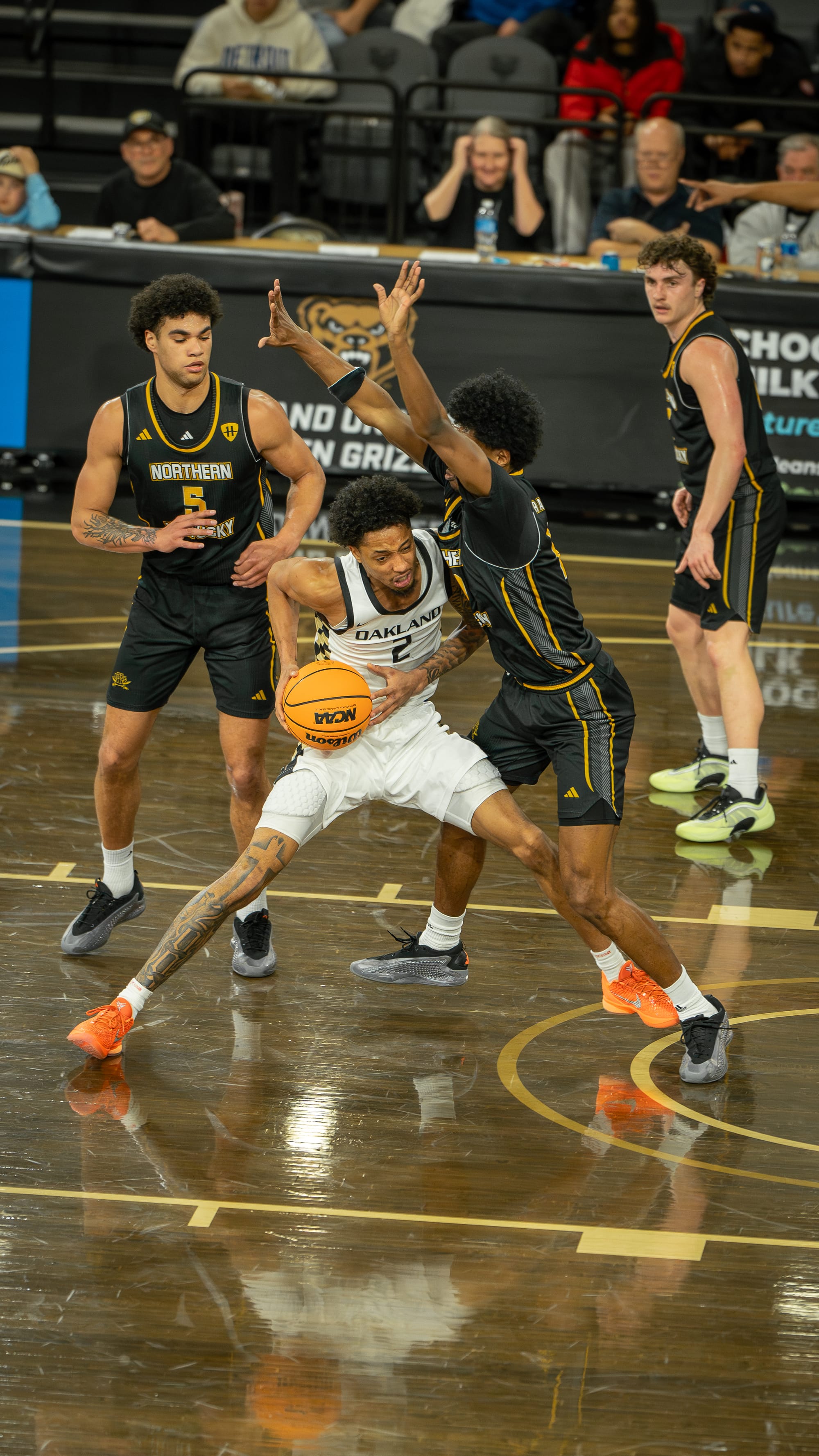 Oakland set the tone on the opening possession by doing exactly what Northern Kentucky feared: attacking the offensive glass. Isaac Garrett grabbed the first miss and Tuburu Naivalurua finished the putback dunk to get the Golden Grizzlies on the board immediately. The Norse struggled early to clean the defensive glass, giving Oakland multiple second-chance looks in the opening minutes.
