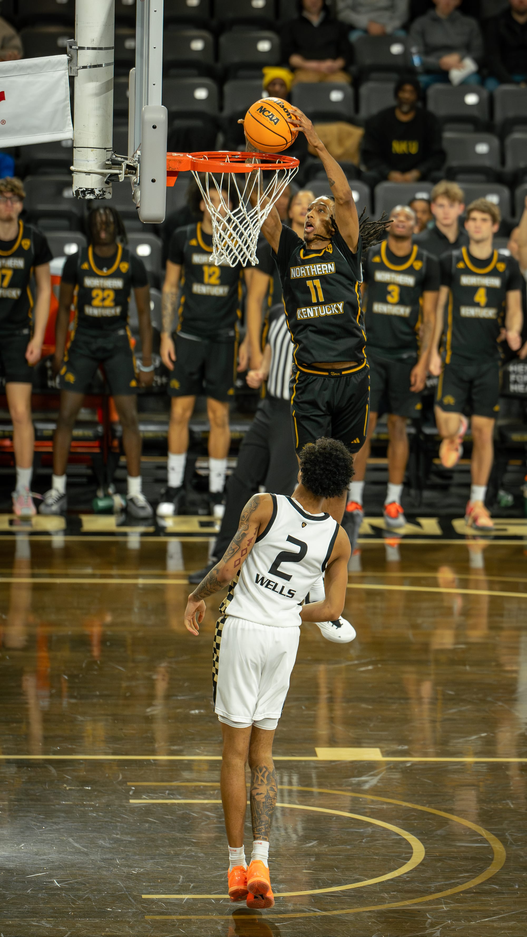 NKU had contributors throughout the roster. LJ Wells recorded his sixth double-double of the season, and the Norse are now 6-0 in games when he reaches that mark this season. Several of his rebounds late were massive, the kind where he simply rose above everyone and secured the ball. Both Wells and the coaching staff were clearly focused on keeping him out of foul trouble. Early in the first half, on a transition play, Wells intentionally avoided contesting a fast break to prevent picking up an early foul.